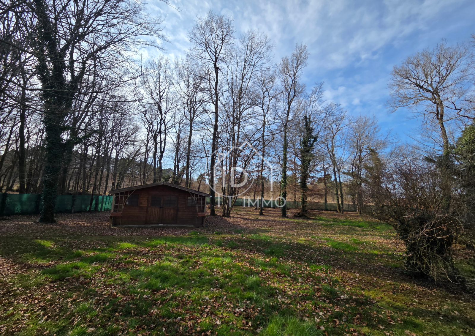 Terrain clos et arboré de plus de 5.000m² avec garge et atelier.